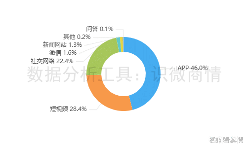该时段内,有关“网传娃哈哈将换标娃小宗”的舆情主要集中在新闻APP平台,约占46%,其次为短视频(约占28.4%),社交网络(约占22.4%)。