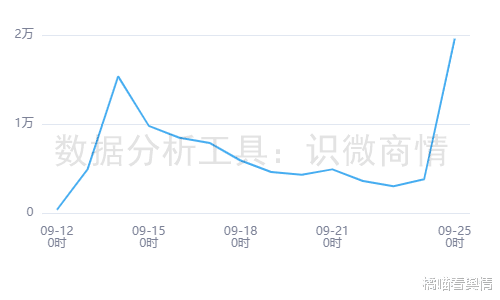 根据识微商情舆情监测系统(https://www.civiw.com/shiyong?pk_campaign=dayusy)显示,2025年9月12日00时至2025年9月25日15时,,有关“网传娃哈哈将换标娃小宗”的舆情热度约为96,402。通过观察趋势可知,舆情于9月14日出现第一个高峰,9月25日达到第二个高峰。