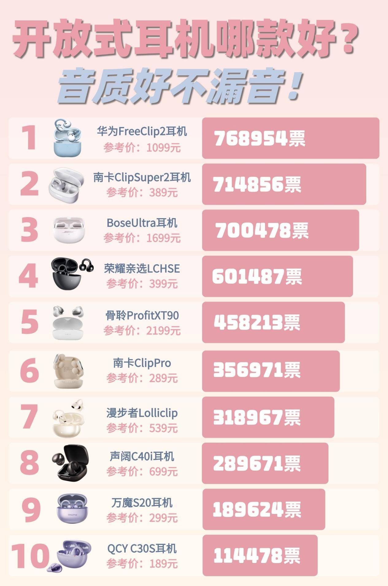 别着急,我们结合佩戴体验、音质表现、续航、防漏音和性价比等多个维度,整理出了2026年值得入手的十款开放式耳机品牌推荐,不管你是第一次买,还是想升级换一副更好的,都能在这里找到适合自己的那一款。
