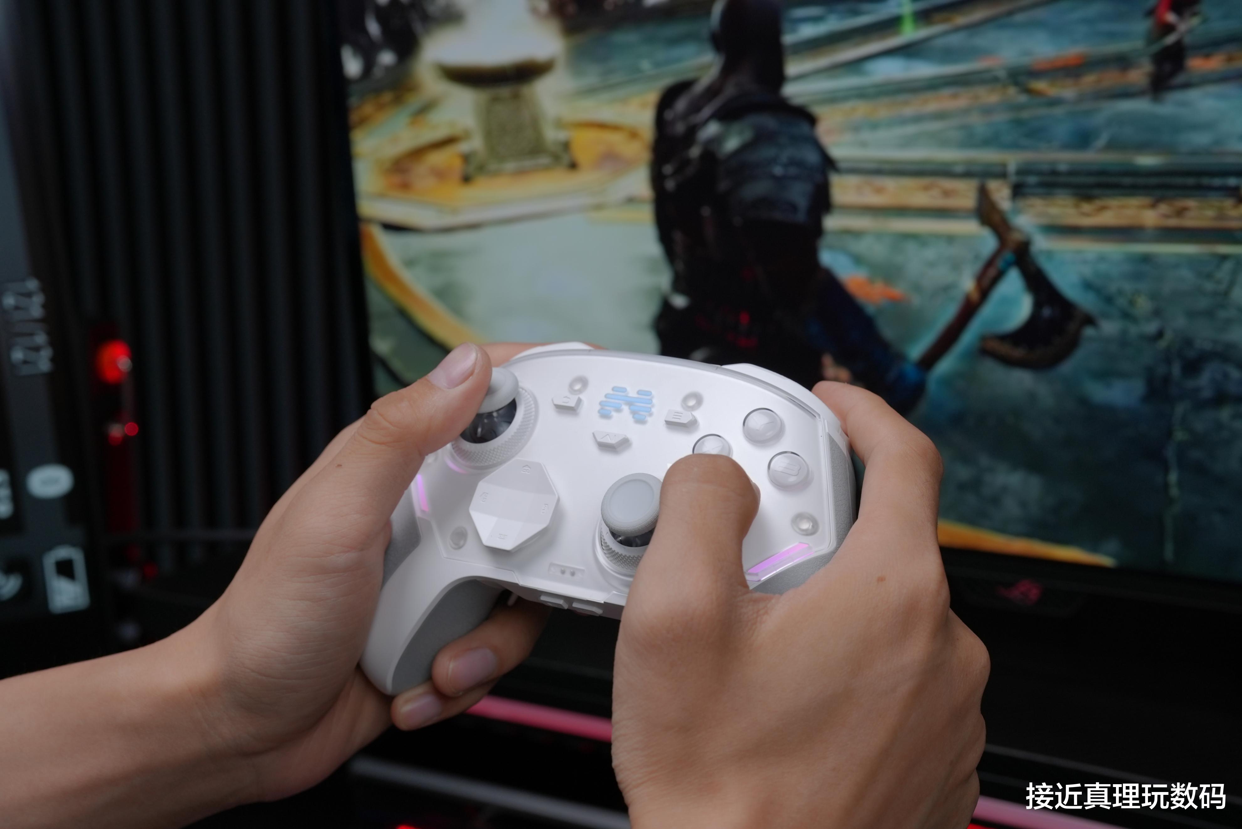 不仅如此,北通鲲鹏40(御铠白)也加入了双切震动扳机设计,支持微动与线性两种手感的一键切换。通过扳机与握把的立体共振,配合北辰AI算法,实现了从细腻触感到强烈反馈的多层次震感。还有北通专利全向十字键,每个方向和角度都可以按,确认感很强,玩格斗游戏的时候精准不串键,搓招超级爽。