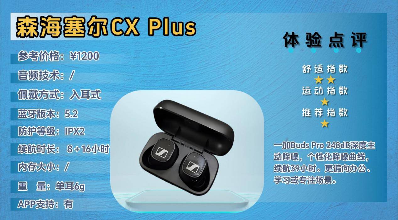 森海塞尔CX Plus主打高端音质和舒适佩戴,适合注重音乐细节和日常通勤、居家、工作使用的用户,是对声音品质有较高要求的人群选择。