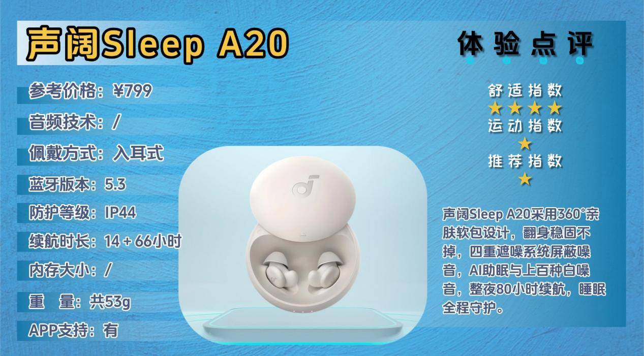 声阔Sleep A20专为睡眠场景设计,主打舒适佩戴与高效助眠,适合侧睡、仰卧等各种睡姿的人群,聚焦深度睡眠体验而非日常通话或运动。