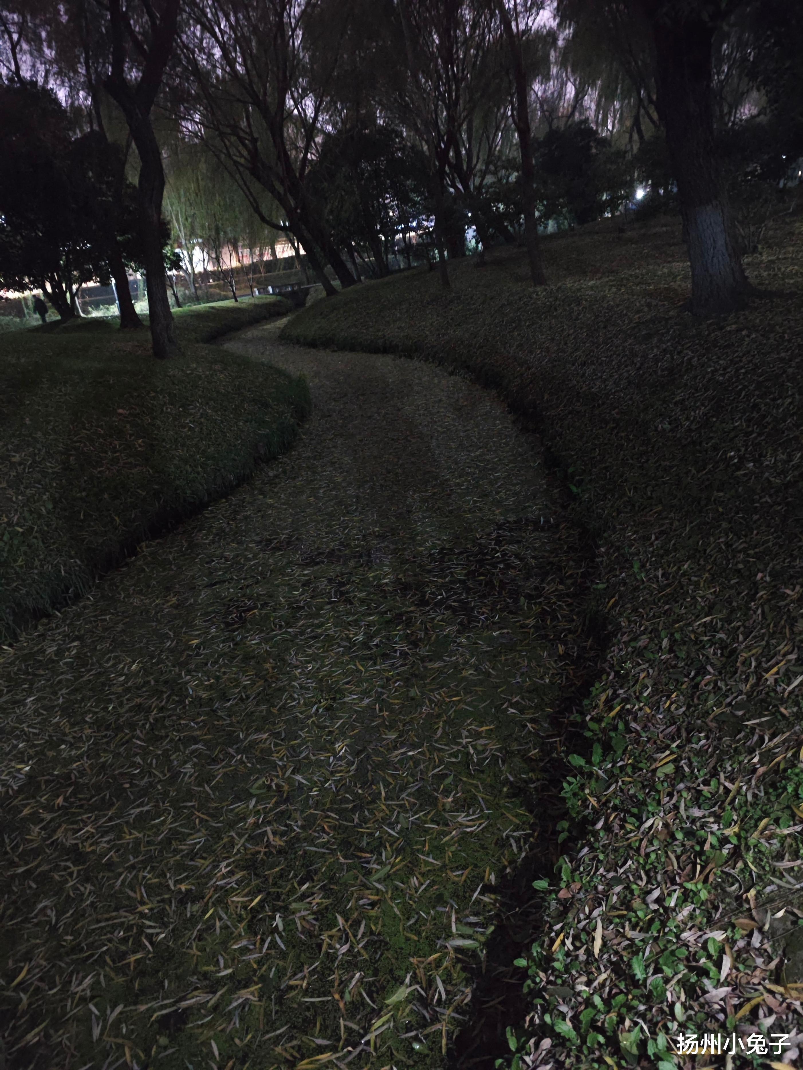 这个月黑风高的夜晚,效果同样相当不错,有点吓人。举着的手机还没有放下,有风来助兴了。掠过林梢的风,夹带着哗哗的声响,好像有什么山魈鬼狐跟着过来一样。手机的视频,直接记录了风扫落叶的盛景。
