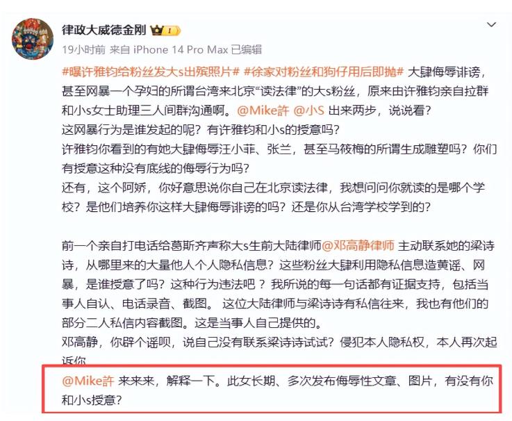 而张兰律师也肯定了这一点,说是他们一家人长期利用大s的粉丝群对汪家进行恶意的攻击。