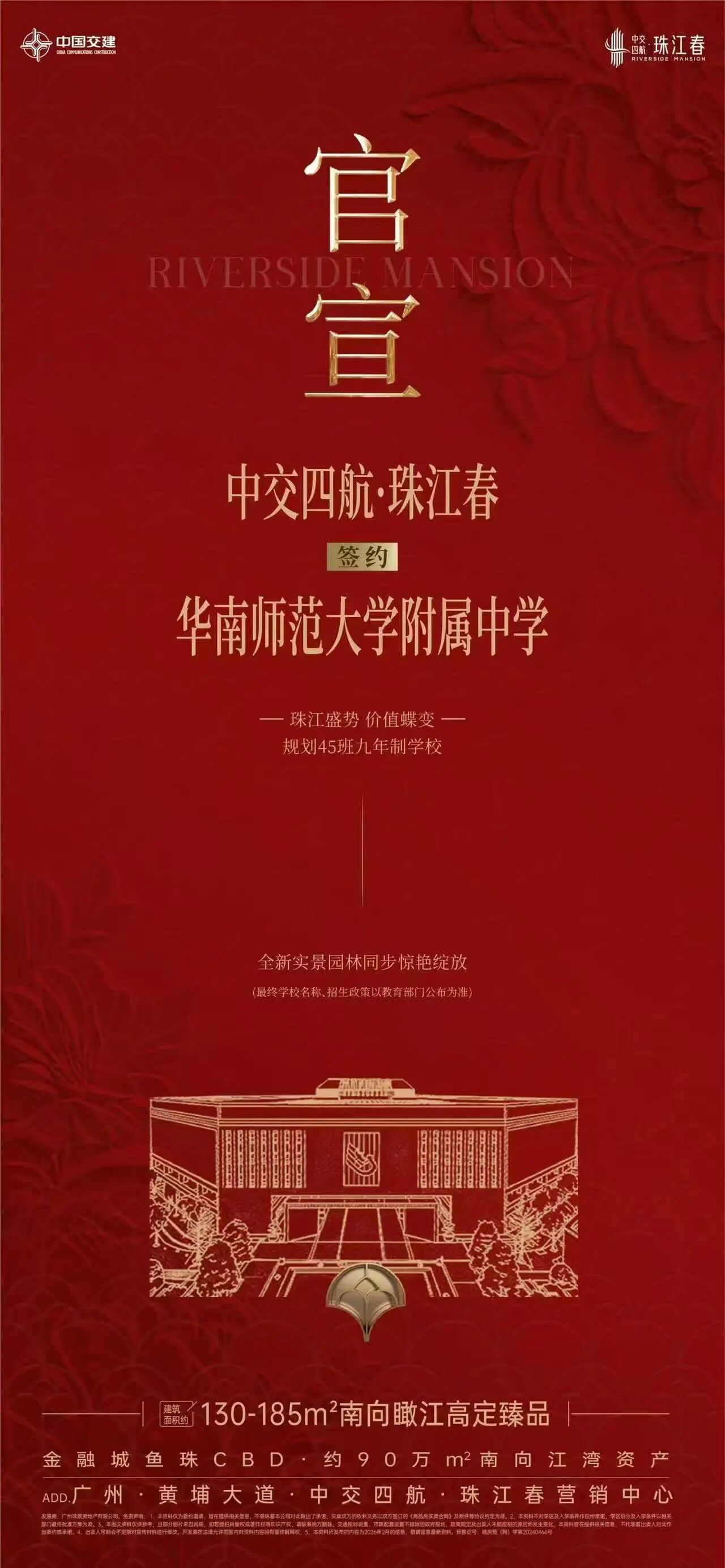 重磅官宣!中交四航·珠江春敲定华师附中2月5日正式签约主打130-180㎡全南向江景大平层单价4.2万/㎡起黄埔鱼珠CBD教育配套再迎重磅利好!中交四航·珠江春官宣引入华师附中,2月5日将完成正式签约,为项目配建的49班九年一贯制公办学校敲定顶尖名校资源,同时项目还规划有18班幼儿园,实现全龄教育配套落地。