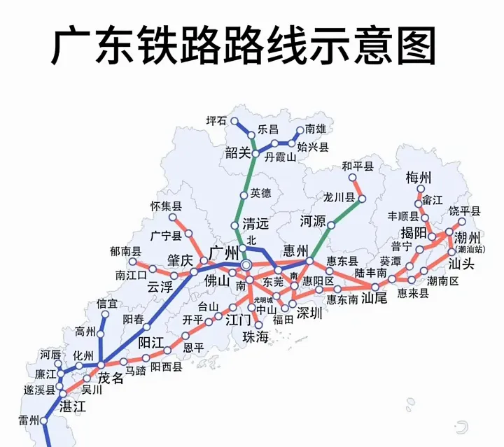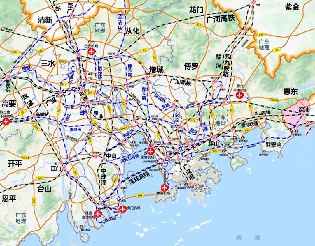 针对这一现状,广东已在规划层面发力。《广东省综合交通运输体系 “十四五” 发展规划》明确提出完善县域交通网络,珠肇高铁、广湛高铁等项目正在推进,其中珠肇高铁通车后将解决江门鹤山不通客运的问题。河源、梅州等地也在谋划深河高铁、河揭高铁等线路,助力县域接入大湾区铁路网。规划聚焦 “均衡发展” 核心,通过 “高铁 + 城际 + 普速” 多层次布局,破解山区建设难题,推动交通资源向欠发达县域倾斜。