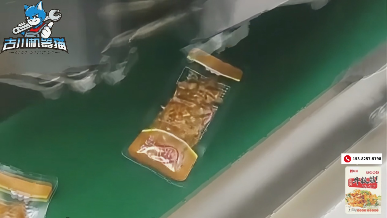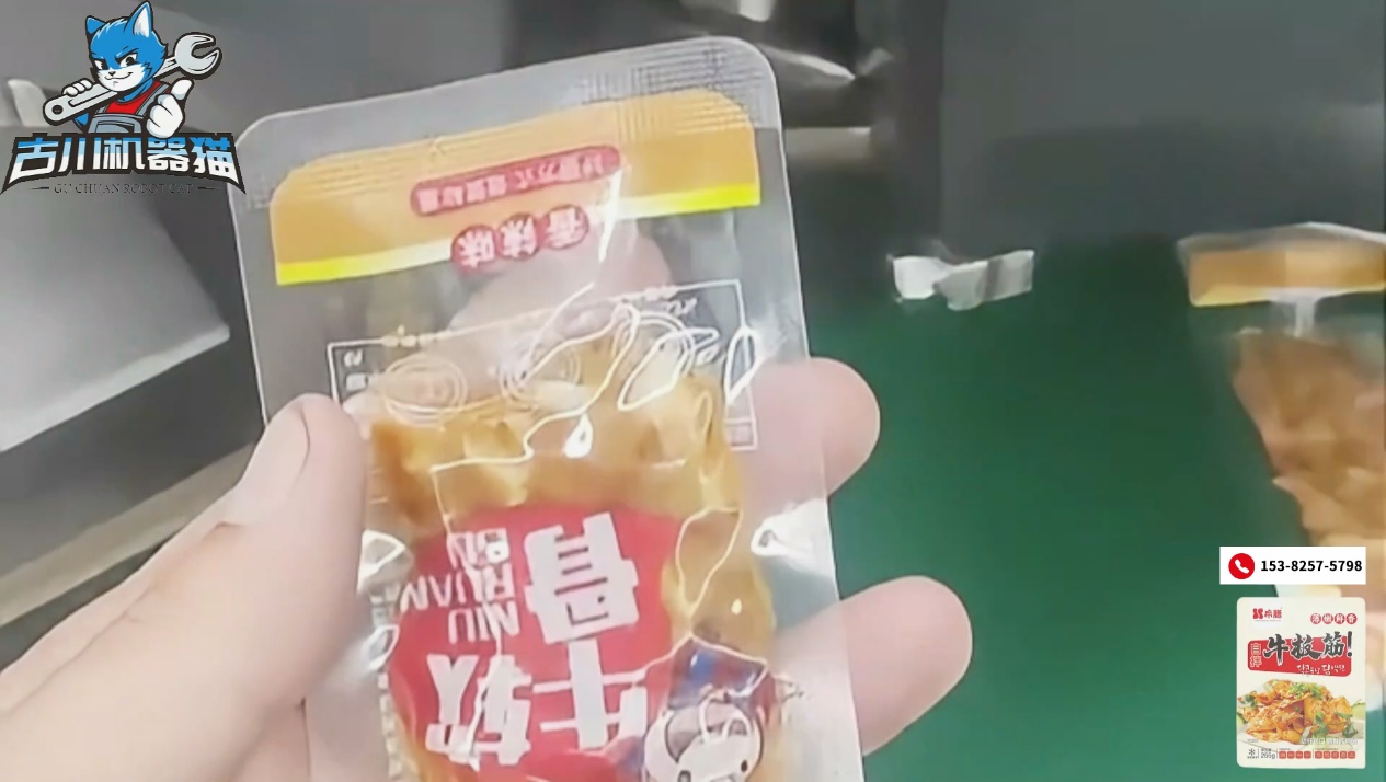 在物料适应性方面,设备表现同样出色。牛板筋形态不规则、带有油脂和酱料,对包装设备的稳定性和密封性要求较高。古川通过结构优化与系统升级,使设备在高速运行状态下依然保持精准下料与稳定抽真空效果,避免夹料、漏封等问题发生。同时,该设备兼容范围广,不仅适用于牛板筋,还可用于多种卤味、酱卤肉制品及其他熟食产品,真正实现一机多用,提升设备利用率。
