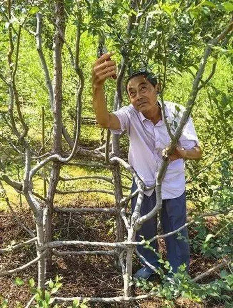 河南有位大叔,花了整整8年时间,没用钉子没用胶,愣是让小树苗自个儿长成了一把把“活椅子”。