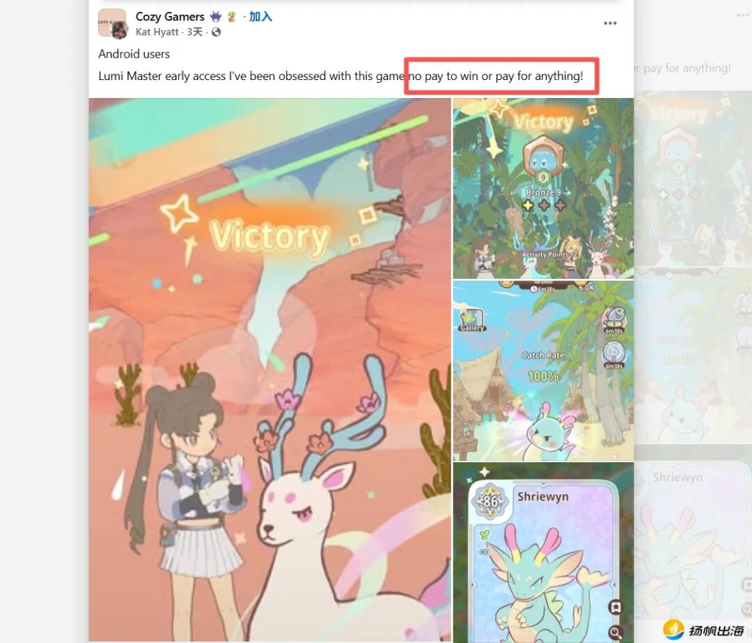 而《Lumi Master》的切入角度,是选择用“泛用户友好”的轻量化设计降低门槛,用“偏女性向审美”和用户建立共鸣,立足于治愈、低负担之后,《Lumi Master》不仅避开了竞争激烈的SLG赛道,同时也把捉宠从竞技、收集的工具变成了治愈、社交的载体,而这种方式无疑能触达到更多泛用户休闲玩家。