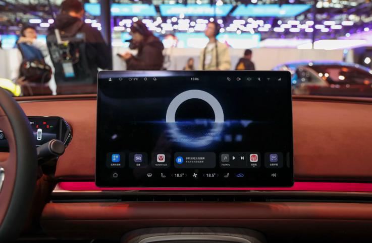 再看座舱内的科技配置,主驾驶前方是一块尺寸略显小巧的液晶仪表,读数清晰直观,但离得远了确实观察不太方便,好在正前方还配备了一块27英寸HUD抬头显示,两者组合来使用,日常驾车提取行车数据还是比较方便的。中间的悬浮式大屏就无需过多赘述了,车机搭载鸿蒙智能座舱,操作体验很流畅,该有的应用软件一个不落,作为车机来说,更像是一台iPad平板电脑。