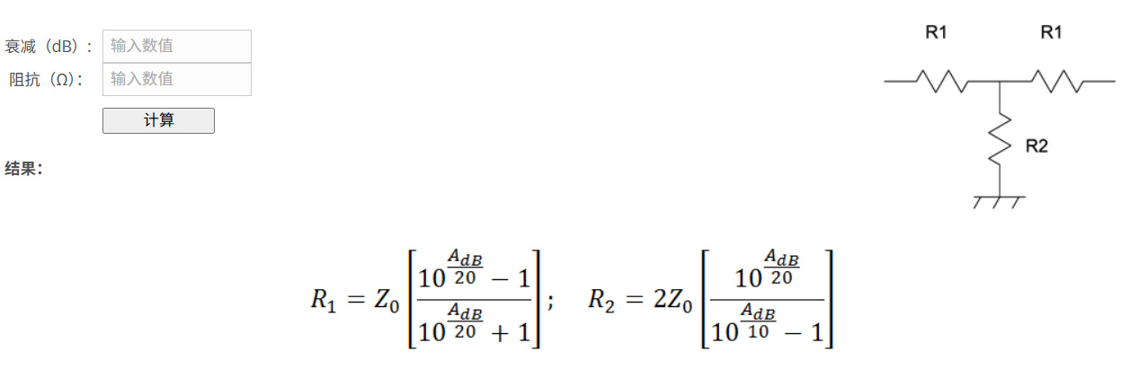 1)T 型衰减器计算器