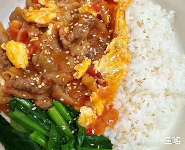 别再分头点“番茄牛腩”和“肥牛盖饭”了,今天让它们合并同类项——番茄先熬成浓稠“岩浆”,肥牛片3秒烫成玫瑰卷,连汤带肉一股脑浇在热米饭上,勺子一拌,粒粒金黄瞬间被染成“夕阳红”,奶香、酸甜、肉香、葱香四层味道像烟花连环炸。全程一口炒锅,15分钟端上桌,成本不到外卖一半,却能让人把碗底刮到“镜面”,连最后一粒玉米都不放过。