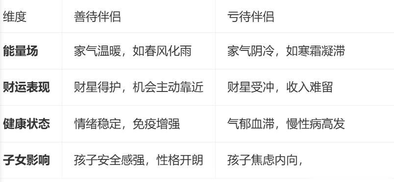 “亏妻者百财不入,亏夫者百病缠身”常被当代人斥为“封建迷信”“情绪绑架”,实则其背后是一套完整的生命系统伦理——它不是玄学预言,而是家庭能量场与个体命运联动的隐性规律。当人们轻率否定它时,实则是在忽视一种被科学反复验证的社会-心理-生理耦合机制。