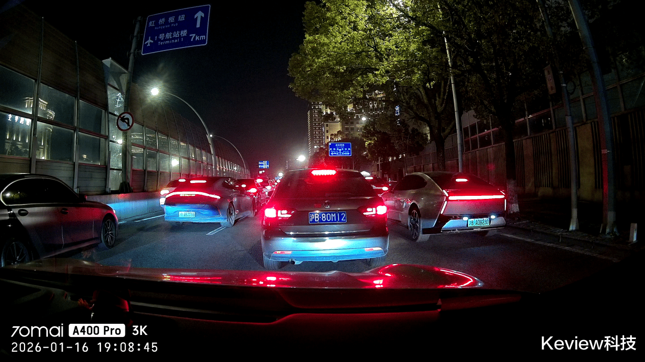 目前很多入门级行车记录仪仅有1080P画质,70迈A400 Pro行车记录仪的3K画质还是较为独特的。它能够清晰地捕捉到道路上的各种细节,无论是白天的阳光明媚还是夜晚的灯光昏暗,记录仪都能输出色彩鲜艳、画面清晰的视频。实测在白天,车辆的车牌号码、道路标识等都能看得一清二楚。