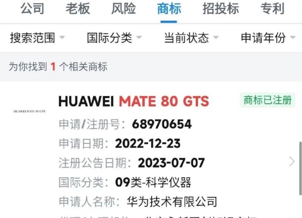 近段时间,关于华为Mate 80系列新成员的传闻愈发密集。从最初商标曝光到机型猜测,如今多个消息源证实:华为Mate 80 GTS并非空穴来风,而是已在路上。有趣的是,华为此前已悄悄注册Mate GTS、Mate 60 GTS、Mate 70 GTS等多个系列商标,直到今天才真正迎来首款落地机型。