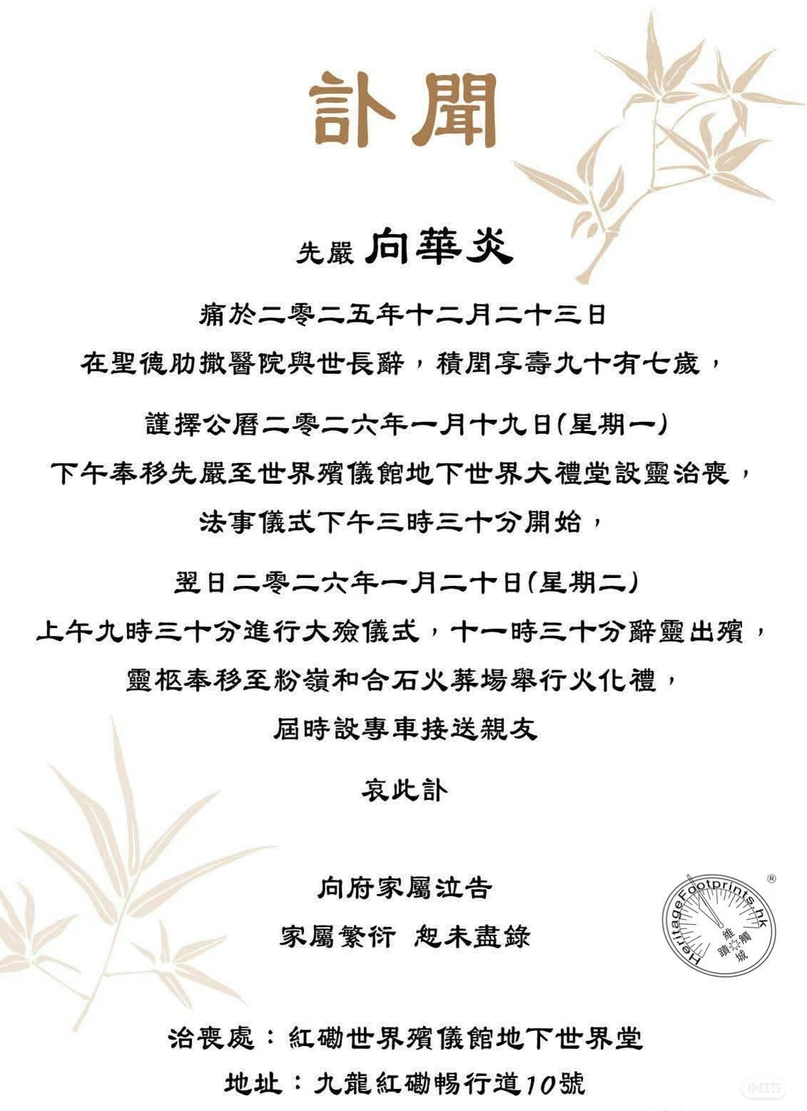 随着这位曾被称为“旧江湖最后掌灯人”,向氏家族“定海神针”的向华炎离世,也意味着香港“江湖时代落幕”。