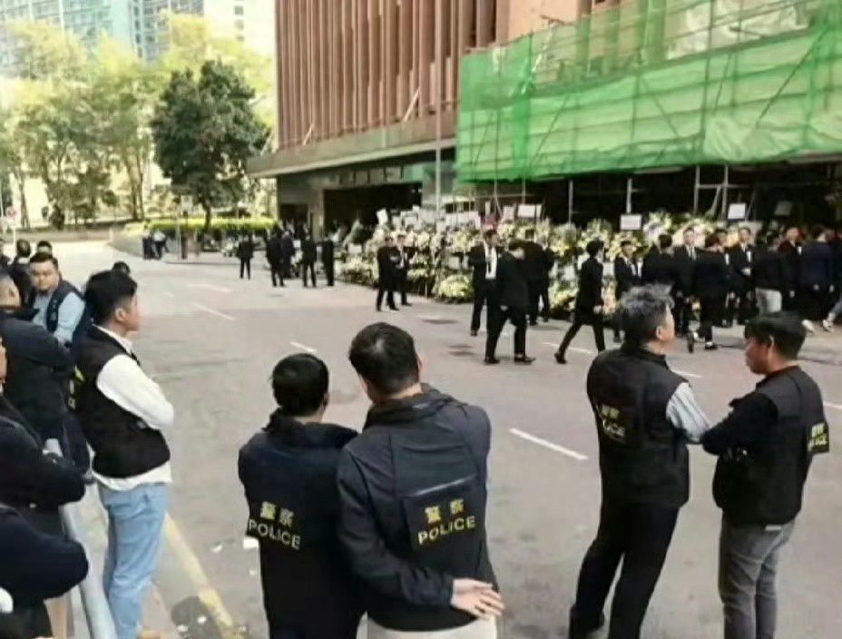 由于当天葬礼亲友里中有不少江湖人士,背景复杂,所以灵堂外上百位警员们一直严阵以待。(ps:有传闻当天警察在登记前来吊唁者身份信息时,当场抓获了3名在逃人员。)