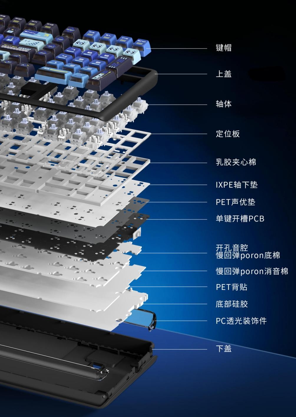 Gasket 结构 + 7 层满配填充设计,达到前所未有的声音手感全新高度