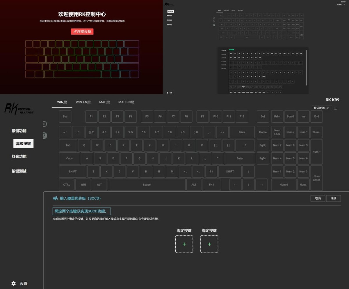 操作便捷性上,RK K99 主打 “即开即用”,搭载自研网页端 + 客户端双端驱动,无需复杂设置,新手也能快速上手。