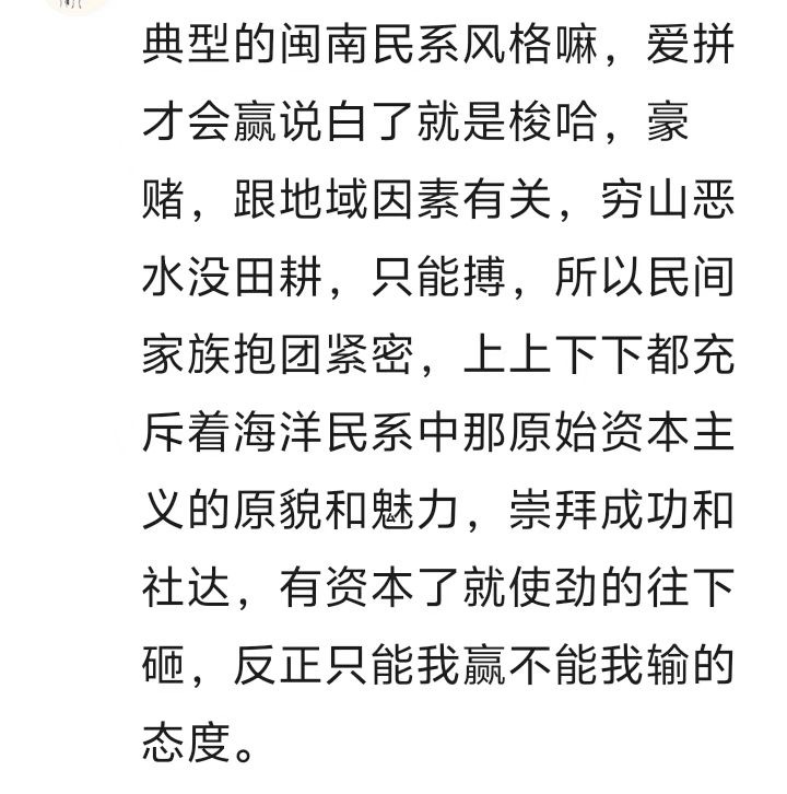 闽南人宗族信仰很强,家族相当团结,在我国可以说数一数二的