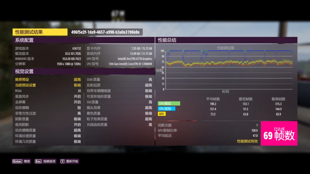 《赛博朋克2077》超级预设画质下平均帧数78.8FPS