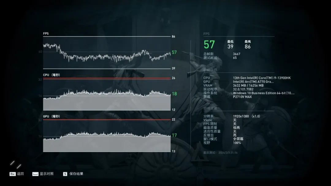 《刺客信条 奥德赛》极高画质平均帧数57FPS