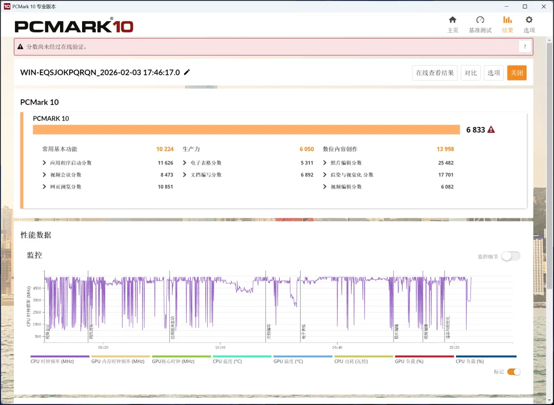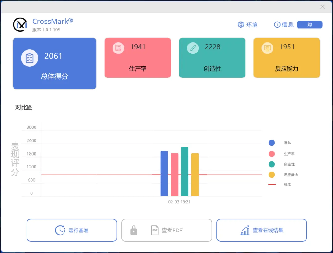 在PCMark10的现代办公测试中总成绩6833分,CrossMark也跑出了2061的成绩,这个表现足以应付高负载的办公和生产力等应用场景。