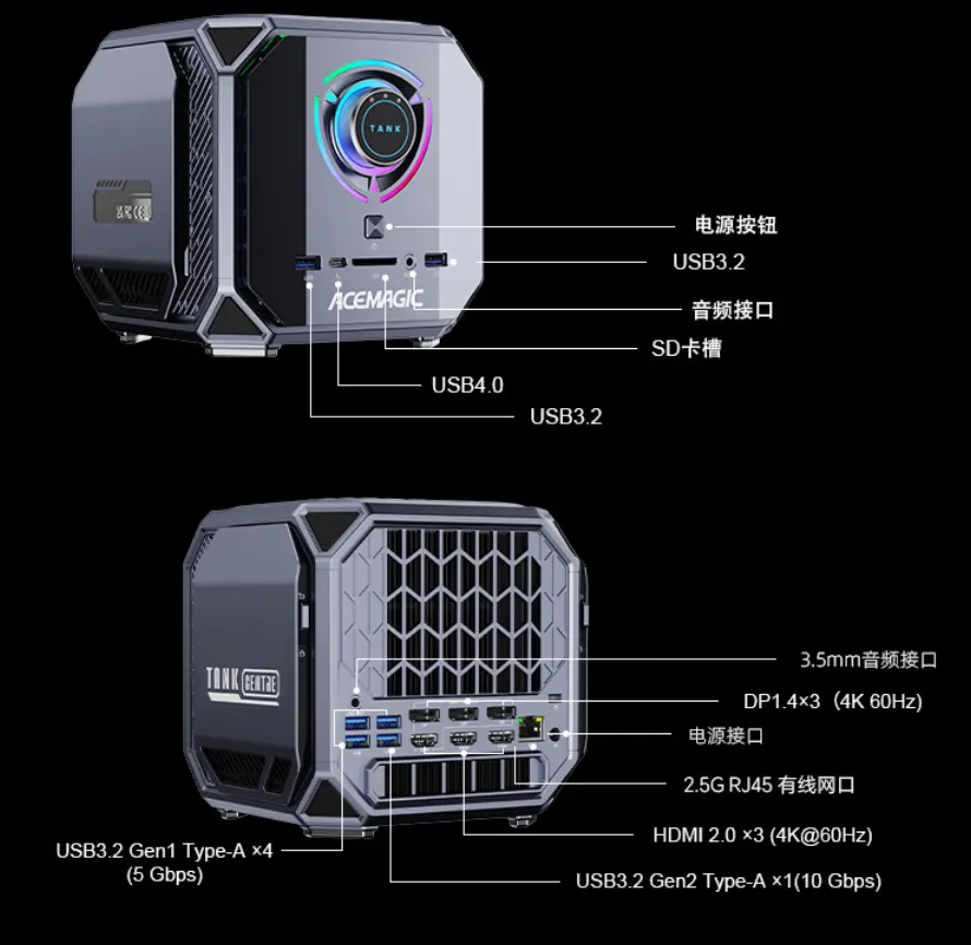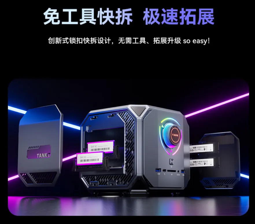 市面上的其他独显迷你主机在拆机升级方面都比较麻烦,而阿迈奇M1A Pro却给出了更利于维护的免工具开盖设计。