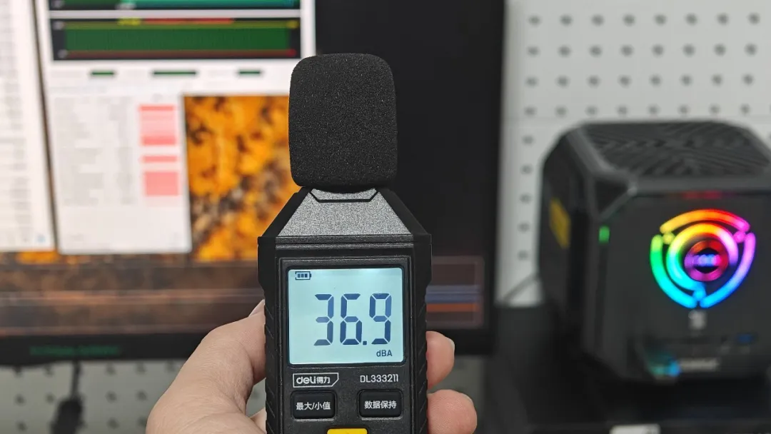 双烤过程中,主机旁噪音48分贝,用户侧噪音则在37分贝左右,不仔细听基本不会受到风扇干扰。