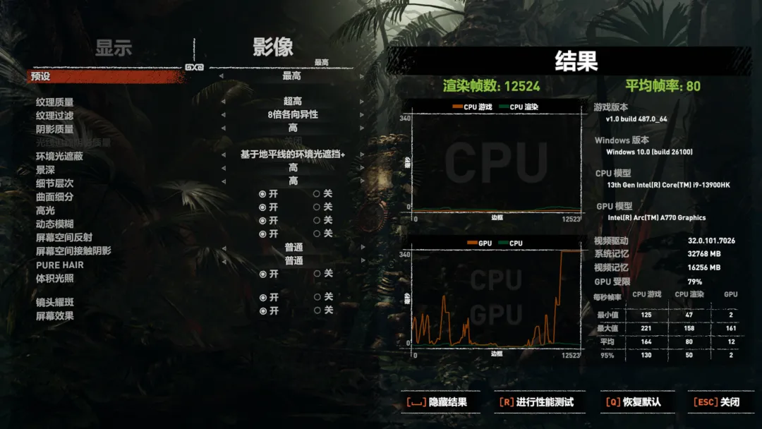《古墓丽影 暗影》最高画质下平均帧数80FPS