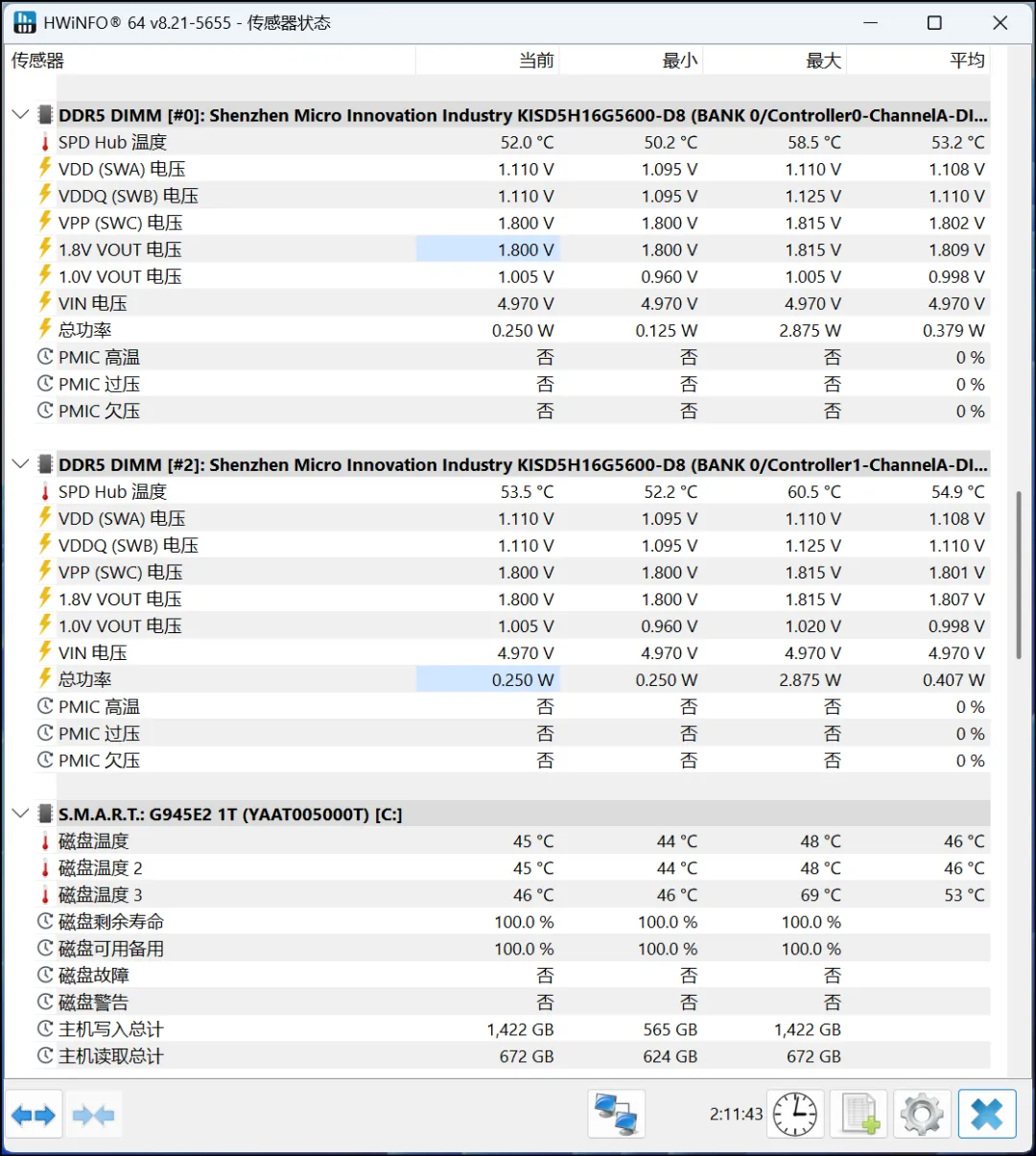 在经历长时间的烤机和测试后,2条内存最高温度只有60度,标配硬盘的最高温度则是74度,算是比较冷静的表现。