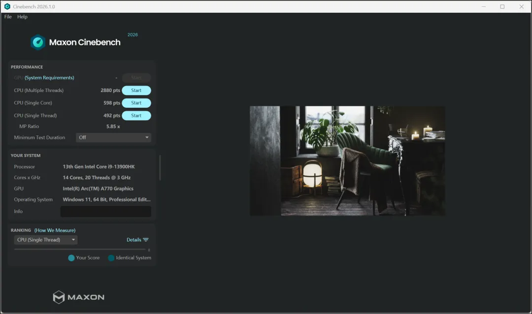 机身左侧,是2个竖立设计的内存插槽,标配2根金速品牌的16GB DDR5-5600内存。只是,13代酷睿H45平台最高仅支持DDR5-5200,所以内存条的实际运行频率会被系统自动降至5200MHz,性能实测如图所示。