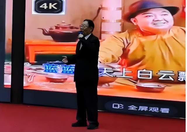 男声独唱《草原上升起不落的太阳》,由88岁高龄的中国传媒大学教授王明臣演唱,他是一位具有传奇人生的知识分子,曾经在中国传媒大学教书育人几十年,可谓桃李满天下,八十多岁的他心态非常年轻,他最近几年不断挑战极限,开飞机、下海潜泳,85岁开始学习书法,今年元月旅游期间受到“情歌王子”李笑天的影响,又开始学习唱歌,两次听课加辅导一个多小时,刚刚练习半个月就敢于登台演出,精神可嘉。他浑厚的嗓音高亢有力,虽然历尽人间沧桑,但是歌声却充满乐观和对生活的热爱,他悠扬的歌声仿佛是一首生活的赞美诗。