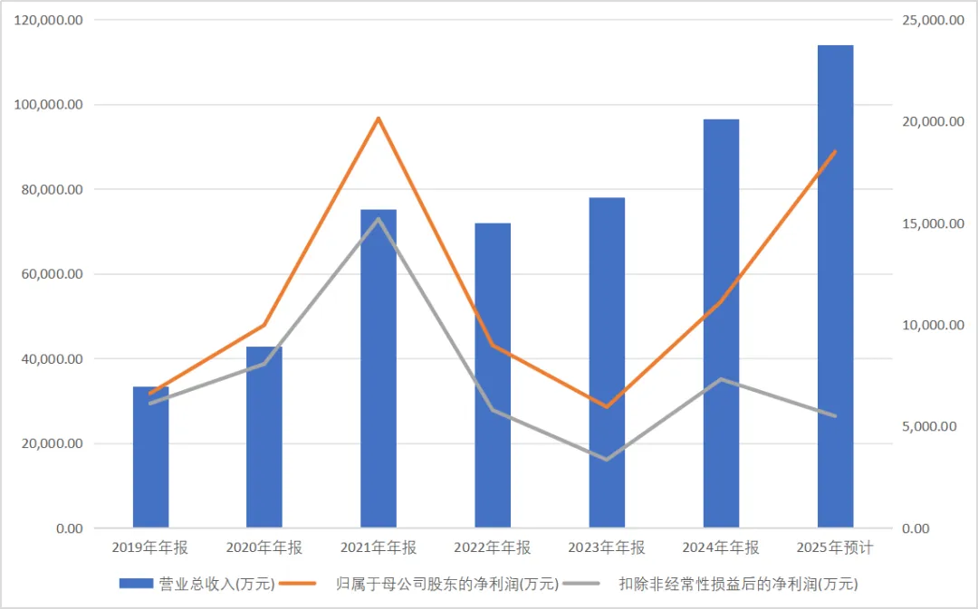 芯朋微的业绩预报显示,预计 2025 年年度实现营业收入为 114,000 万元左右,与上年同期相比,将增加 17,540 万元左右,同比增长 18%左右。归属于母公司所有者的净利润为 18,500 万元左右,与上年同期相比,将增加 7,367 万元左右,同比增长 66%左右。