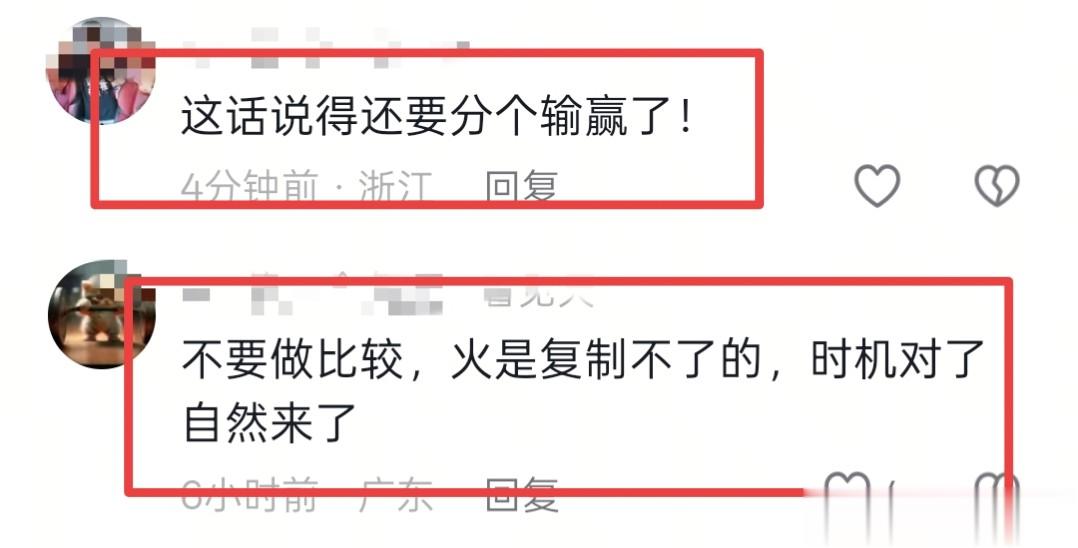 还有网友戳破关键:“呆呆是无心插柳,灿灿是刻意模仿,张口就是输赢,吃相太难看”。