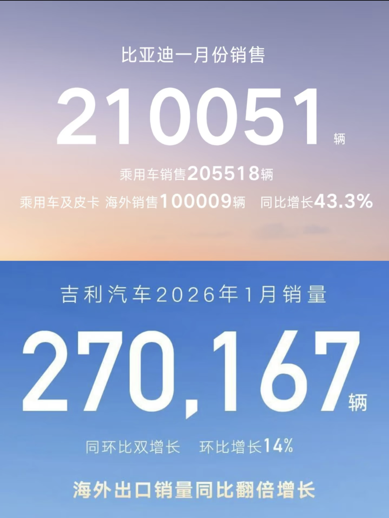 比亚迪仅210051辆,吉利270167领先反而拿下销冠