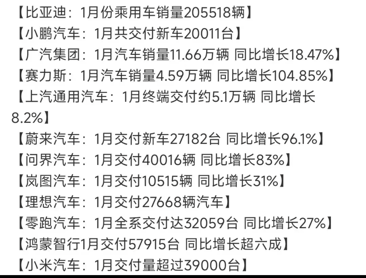 吉利要篡位?网友:吉利的1月份销量一直都很好蔚小理一月份的销量也不太好,蔚来只有27182辆,理想是27668辆,小鹏是20011辆,哪怕是零跑,也只有32059辆,跌的最多的是比亚迪。开年这销量,看来整年的目标都不会太好了,而你们说销量不好,那为什么吉利销量却还是这么稳?