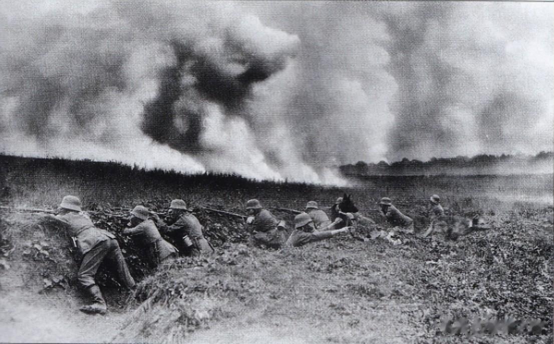 大面积释放的毒气形成一道幕墙,向敌方阵地飘散。