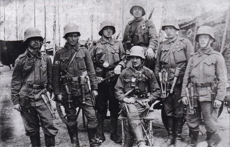 奥匈帝国的暴风突击队装备与德军相似,士兵腰上都挂了一把用于剪断铁丝网的钳子。