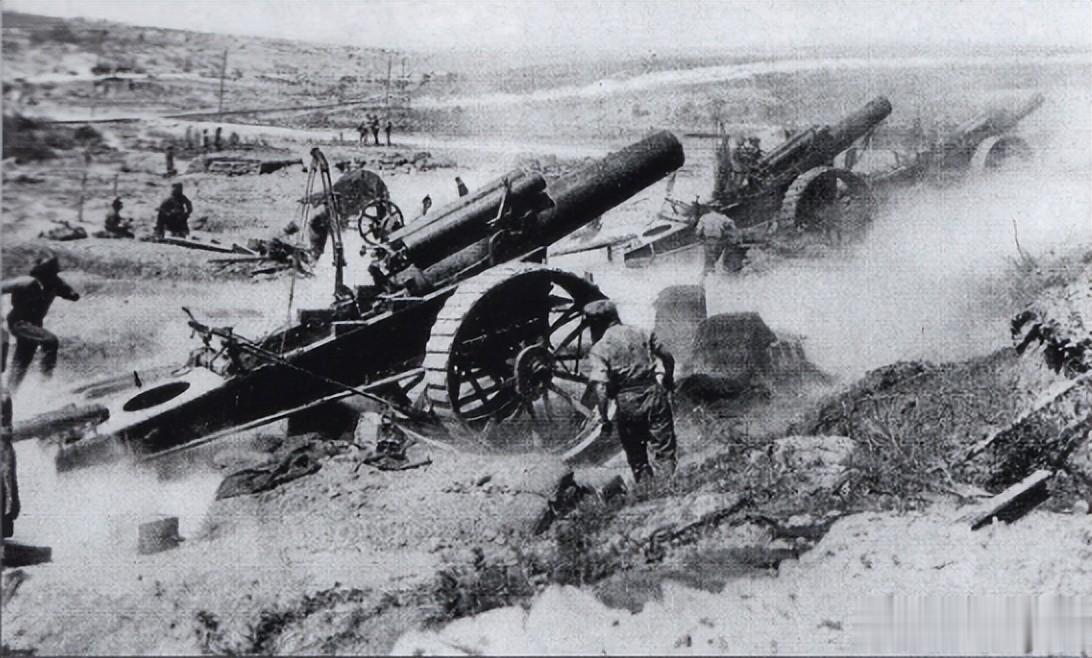 发射中的英军维克斯Mod1917 203毫米榴弹炮