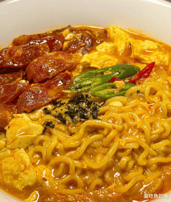这道面的妙处,在于用最家常的食材玩出新意。辛拉面人人会煮,腊肠冰箱常备,干桂花更是泡茶剩下的边角料——可一旦组合起来,就成了一道有记忆点的“创意家常菜”。它适合深夜加班后的自我犒赏,也适合周末懒人不想开火时的精致糊弄。辣不怕的人吃得酣畅,怕辣的朋友也会被腊肠和桂花温柔安抚。一碗下肚,胃暖了,心也静了,仿佛秋日午后坐在江南庭院,手里却端着一锅热辣江湖——矛盾又迷人,就像生活本身。