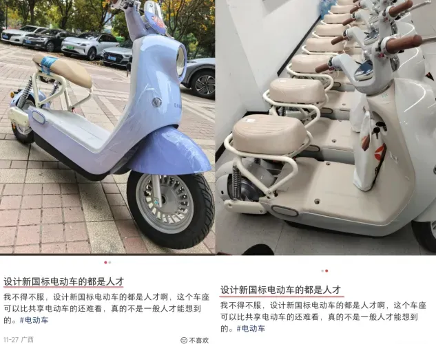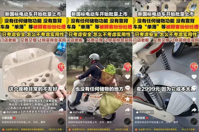 网上流传的吐槽,主要针对的是某品牌的某一款新国标电动车。