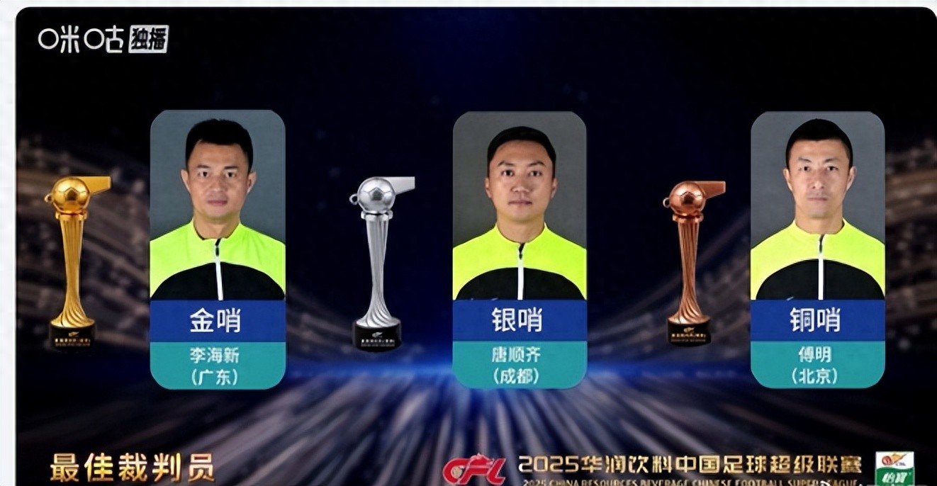 当李海新站在2025赛季中超颁奖典礼的聚光灯下,接过“金哨”奖杯的那一刻,中国足球的裁判圈,终于迎来了久违的高光时刻。中超金哨、中甲金哨双双落定,李海新、李会刚们用一场“裁判复兴”向世界宣告:中国足球的公平,不再靠外援裁判救场!好评不断的马宁居然落选了,让很多喜欢他的球迷为他打抱不平,为什么是这种结果?