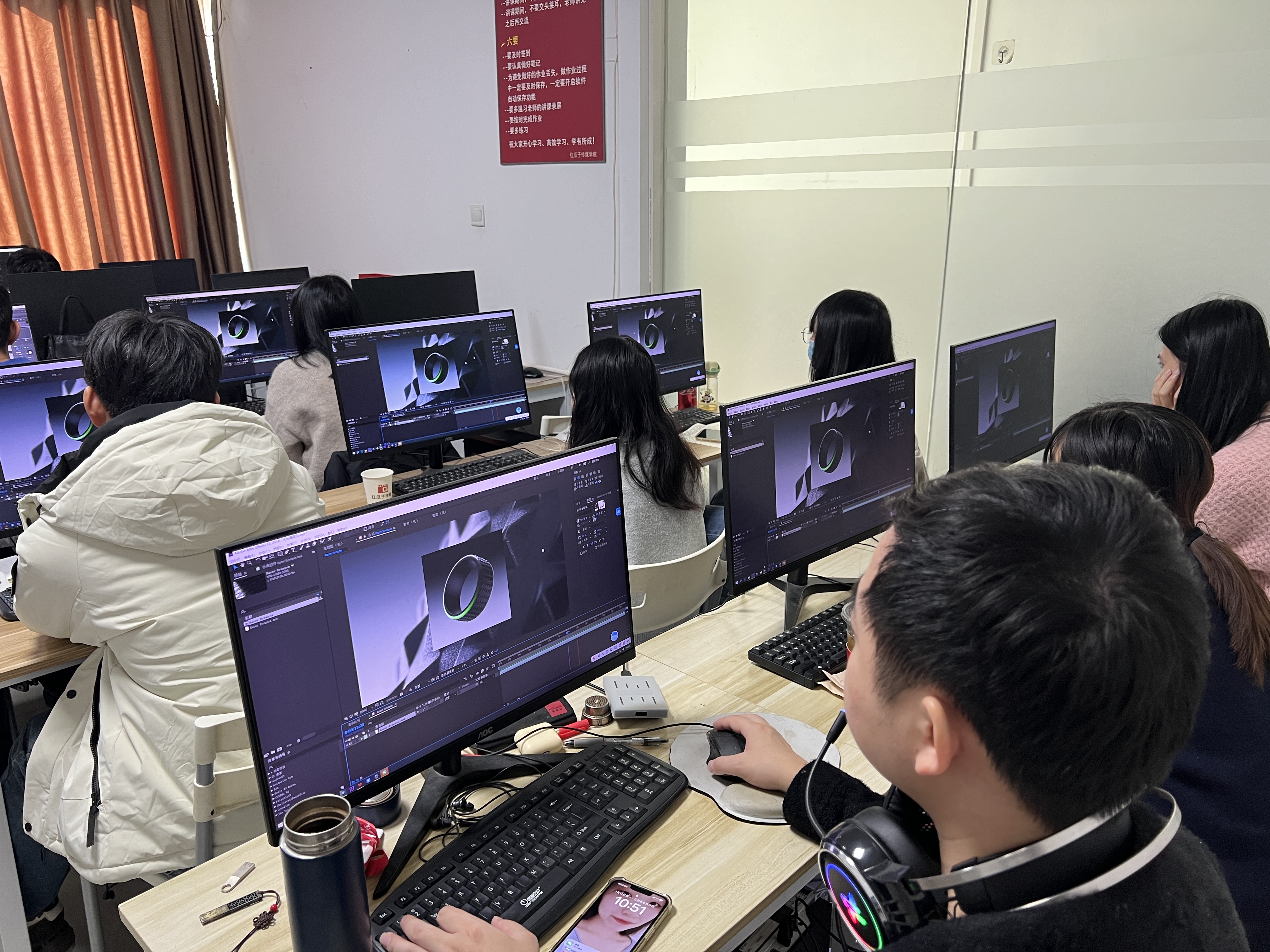 走进宝安区的一间教室,十余名学员正专注地盯着电脑屏幕,一位老师在每个学员身后轮流指导。这不是传统的课堂,更像是一个小型制作工作室。