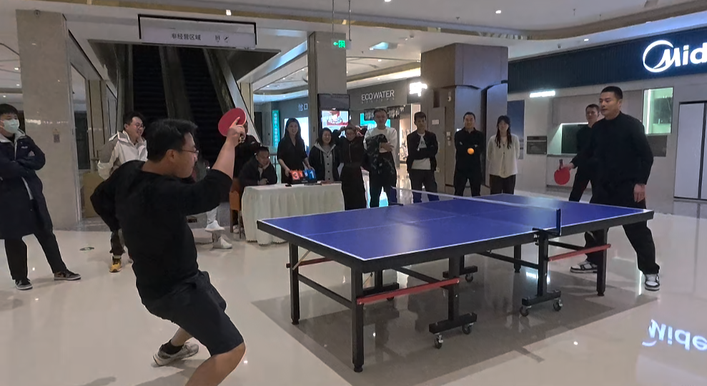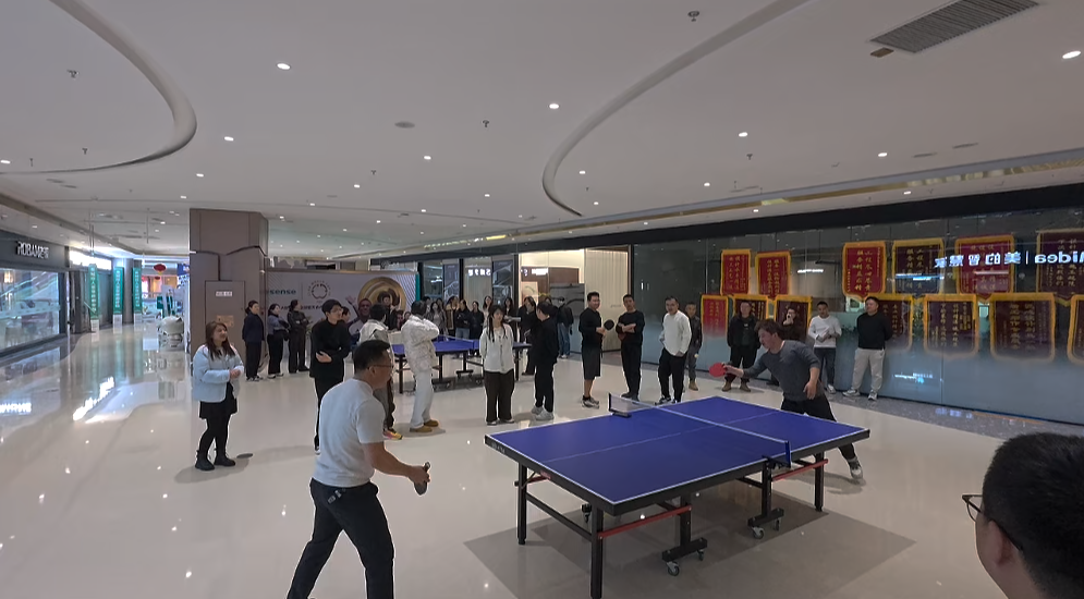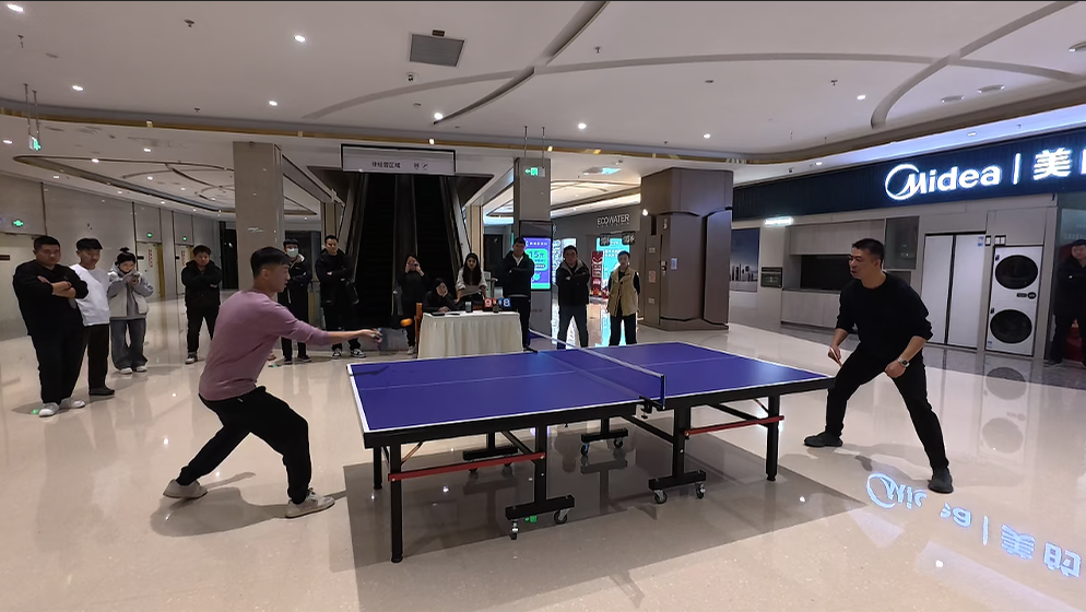 当窗外的风裹着霜气掠过街道❄️,冬天的冷气就被一阵“乒乒乓乓”撞得稀碎——蓝色球台边围满了人,有人举着球拍蹦跶热身,有人攥着热奶茶喊“加油”,连灯光都跟着这股热乎气软了下来🔥。