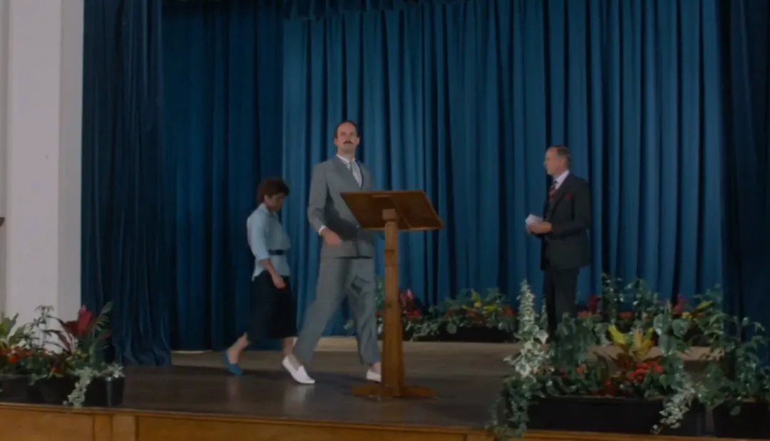 本片讽刺的地方在于人们日常想象中的所有的严肃场合其实本质上并没有这么严肃,就连校长最后指示一个不认识的老师带头唱歌的时候也跟自己之前在学校规训学生的时候没什么两样。这充分说明了即便是这样一场优秀校长的研讨会,本质上也是一个草台班子,他们不仅仅跟自己的学生没有区分,甚至于跟路人也没有区分。大家依旧是表面上将自己打造成为一个严谨的人,实际上却无法在日常生活中始终如一。