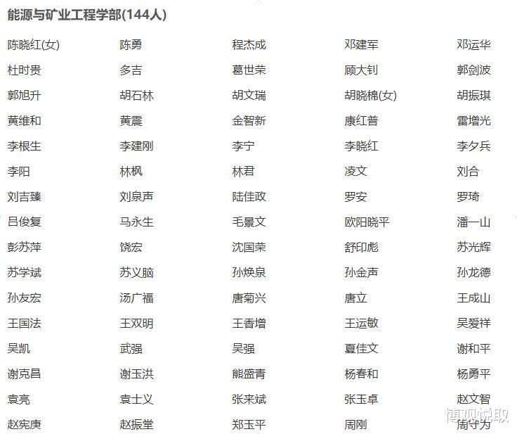 资源与环境交叉(约24人):涉及资源高效利用与生态修复,如胡振琪(矿区复垦专家)、杨春和(地下空间与能源存储权威)、吴爱祥(金属矿绿色开采创新者)。