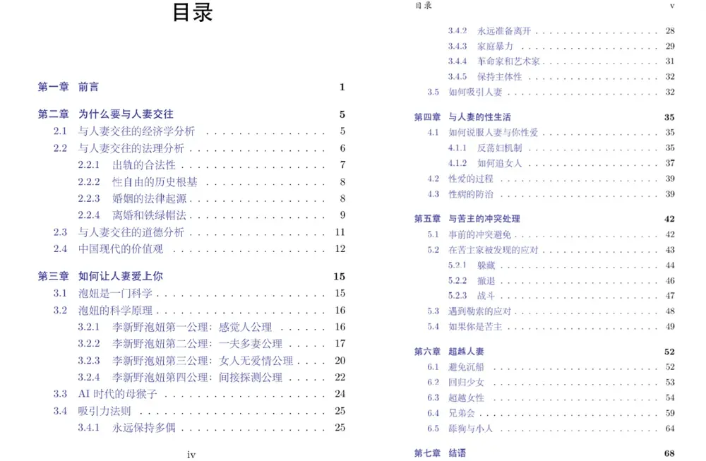 整本书都在说为什么要和人妻搞在一起,用词非常露骨,且看部分目录。
