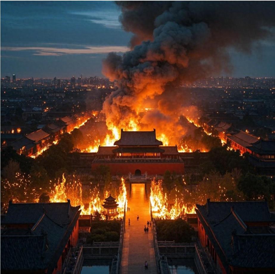 风裹着火星舔舐着朱红宫墙,殿宇坍塌的巨响震得地面发颤……