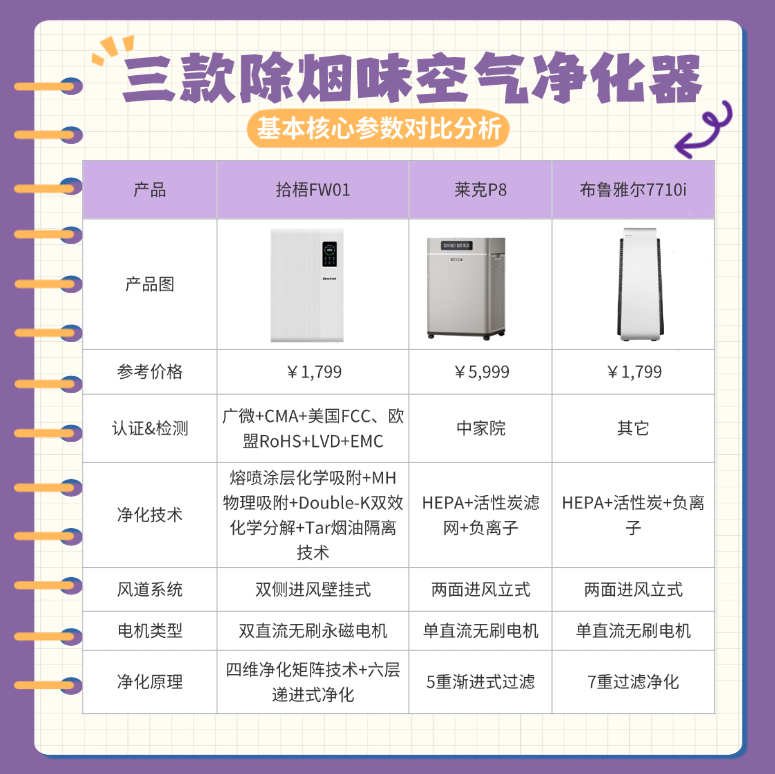以上是三款除烟味空气净化器的基本参数